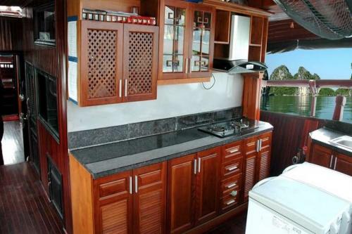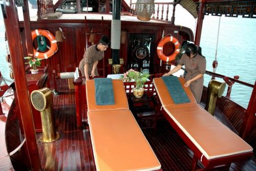 Welcome aboard Origin Vietnam’s L’Amour Junk (Formed Princess Junk) The L’AmourJunk is the first deluxe boutique one-cabin junk on Halong Bay..The intimate vessel is designed with sophistication and luxury for our valued guests. From the moment you step aboard to the time you disembark, you will be surrounded by luxurious handcrafted teak and oak woodwork and pampered in luxury.