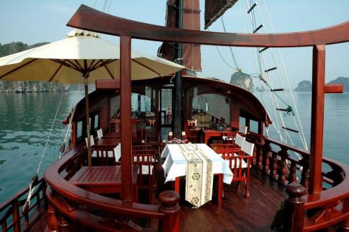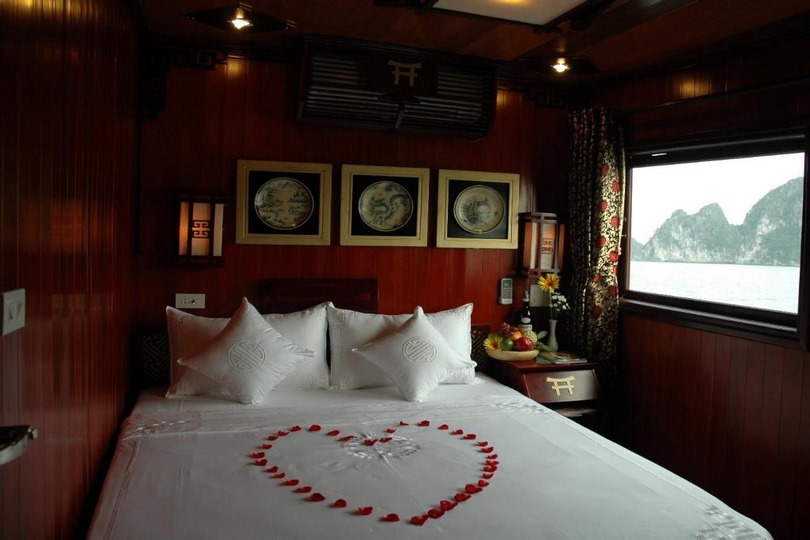 The Halong Dragon Pearl Junk is a brand new Chinese wooden junk crewed by a professional, loyal and dedicated team. Spread over 3 decks she has 11 en-suite fully equipped cabins, a bar with soft seating and plasma TV, gourmet restaurant, outside dining area and sundeck. Come onboard The Halong Dragon Pearl Junk . Be charmed by her exquisite luxury, intimate setting and unrivalled home from home service. An unforgettable way to witness the serene, calm setting of Halong Bay’s exceptional natural beauty.