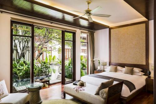 - Henri Mouhot Two Bedroom Suite: 235 sqm, King size bed, private plunge pool and outdoor shower, outdoor garden with dining area, dining area with wine humidor, indoor bathroom with double vanity counter and oversized rain shower, in room Spa featuring whirlpool Jacuzzi bath tub, deep plunge and massage area. Complimentary Daily 30 minutes SPA and daily laundry. Complimentary premium bar