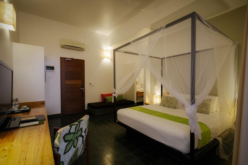 - Studio: 30 sqm, one king-sized bed and one convertible day bed, views of historic Phnom Penh from the upper floor balconies