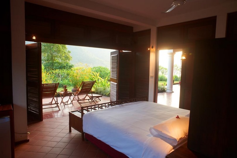 - Deluxe room: 24sqm of floor space with high ceilings. The walls, beams, and doors are all made of wood, the luxurious parquet floors of rosewood. An added feature is the walls, which are completely removable with a system of sophisticated sliding panels. They open to reveal an incredible view of the Mekong and the surrounding landscape.
