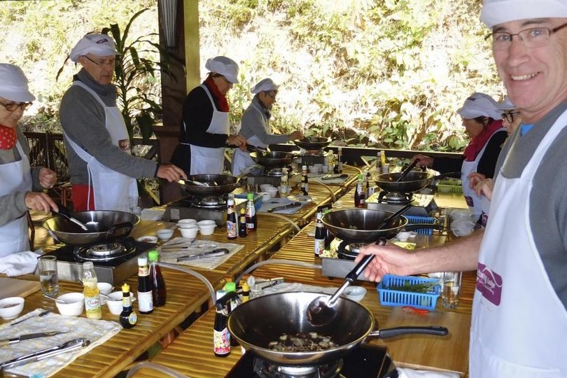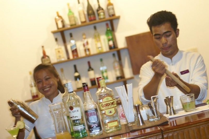 - “The Sunset”: located on top of the hill, caters for the Deluxe rooms and the Suites but is also open to outside guests. A menu a la carte, Laos and western style cuisine