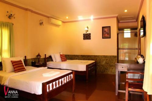 Tucked away in the beautiful gardens of Kep National Park, Vanna Hill Resort provides wooden Khmer-style bungalows with private balconies and free Wi-Fi. Overlooking the ocean and Bokor hill, it features a large outdoor pool.