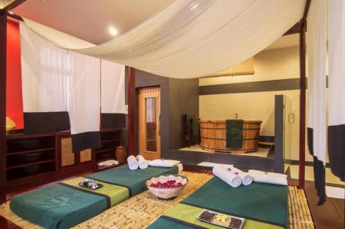 The 77 rooms at BB Sapa Resort & Spa feature private terrace, wood flooring and offer views over Sapa village, the resort’s lush gardens or Mount Fansipan. A warm touch of local decoration provides guests with a sense of calm in the mountain chalet atmosphere.