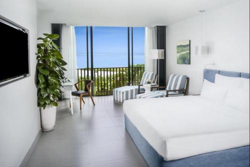 120 sea-facing rooms, including