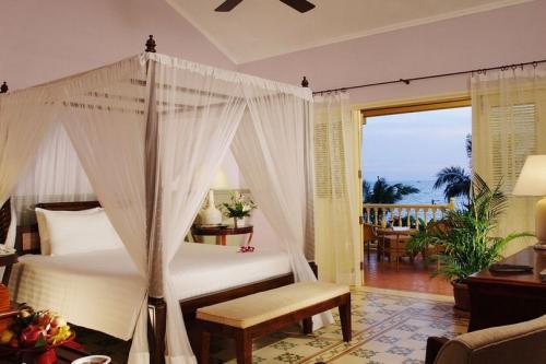 - 03 Junior Suite Ocean View: 73sqm, located some steps from the beach with stunning sea views, traditional four-poster bed, design of Vietnamese art and bespoke Indochine furnishing, dining and living area with private terrace, bathroom with separate bathtub and shower, and luxurious amenities