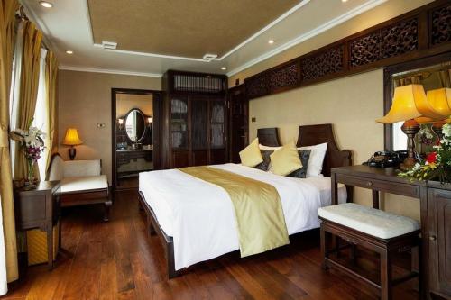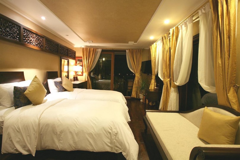Launched on November 2009, a five star boutique cruise ship – the Halong Violet – fitted out in the 1930’s Indochine style. Like her namesake, The Violet is small and exquisite. It featured a boutique dinning room, library and lounge, Spa, Gym and 6 individual theme cabins with marble bathroom, jacuzzi and balcony. The ship also cruise its own way away from the crowd to untouched areas of the bay.