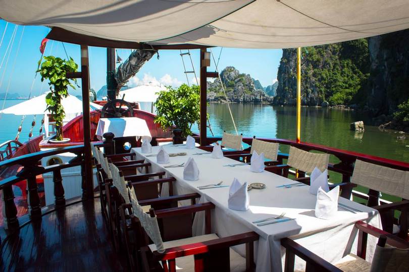 Modelled on a 17th century pirate ship, Red Dragon Junk is an all-wooden junk which took four years to build. It’s all dark wood and brass with decorative flourishes, and it doesn’t take a lot of imagination to picture pirates swinging from the sails. There are five rooms on the boat, all with ensuite bathrooms with hot-water showers (and a porthole looking out to sea) and a window onto the ocean from the bedroom. With all this on offer, as well as an extraordinarily exciting cruise itinerary and some of the most beautiful scenery you’ll ever see, you may well feel as if the Red Dragon Junk experience is something of a dream.