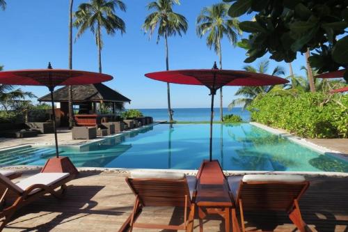 The resort features 24 private bungalows and two twin bungalows, purposely built all by hand in wood to provide unique accommodation in harmony with its surrounding, the beach, the many palm trees and its nearby villages. The bungalows caterer up to 70 square meter living room and 40 square meter private terrace overlooking the seaside.