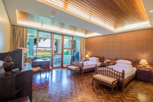 The Aye Yar River View Resort offers a range of accommodation designed to suit the demands of the individual traveller, honeymooners , family , or for a corporate events. 103 spacious rooms of deluxe category or better. All with private patio or balcony and with panoramic views of the Ayeyarwaddy River or ancient pagodas or gardens All rooms and suites offer a mix of old Bagan – inspired and contemporary designs with indigenous handmade furnishings. The private patio or balcony offers the opportunity to dine or simply relax.