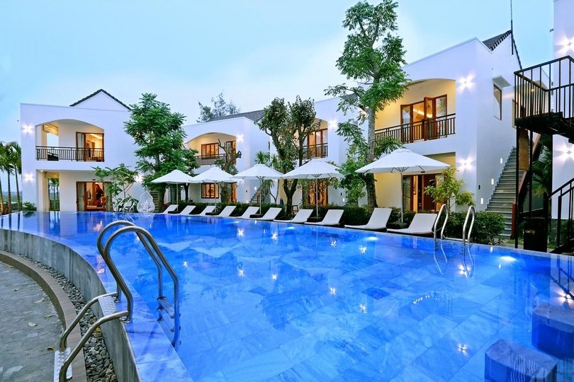 The Azumi is a small and charming boutique style hotel with just 14 rooms, located just outside the historical UNESCO city of Hoi An. Rooms here are spacious and furnished in contemporary style with bright colored furnishings and local art.