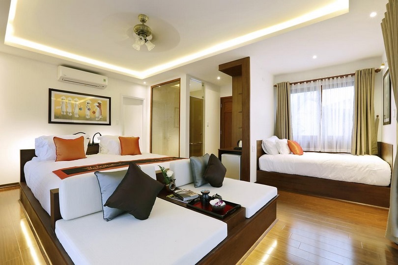 - Family Suite: 60sqm, a king bed and a single bed and sofa, with small balcony for you to enjoy the atmosphere and perfume of Hoi An‘s rice field