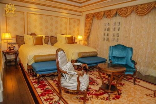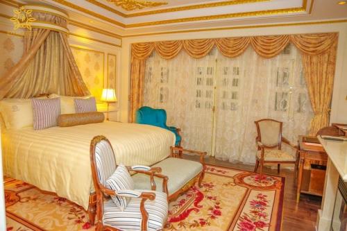 - Royal Executive Suite rooms: offer 1 bedroom with double bed, a sizeable working area and all luxury amenities with stunning ceilings and French decoration, a decorative living room