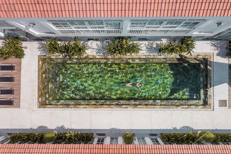 - Family suite: 77m2 with 02 rooms (one king bed + sofa); pool view.