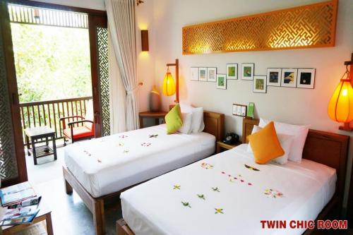 - Double Chic: 45sqm, private veranda, 04 rooms on ground floor, views of garden and lotus pond; 04 rooms on ground floor, view of pastoral paddy fields;01 room on first floor, overlooking garden and lotus pond.