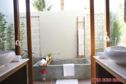- Twin Chic: 45sqm, private balcony on first floor, overlooking garden, lotus pond, pool and pastoral paddy fields.